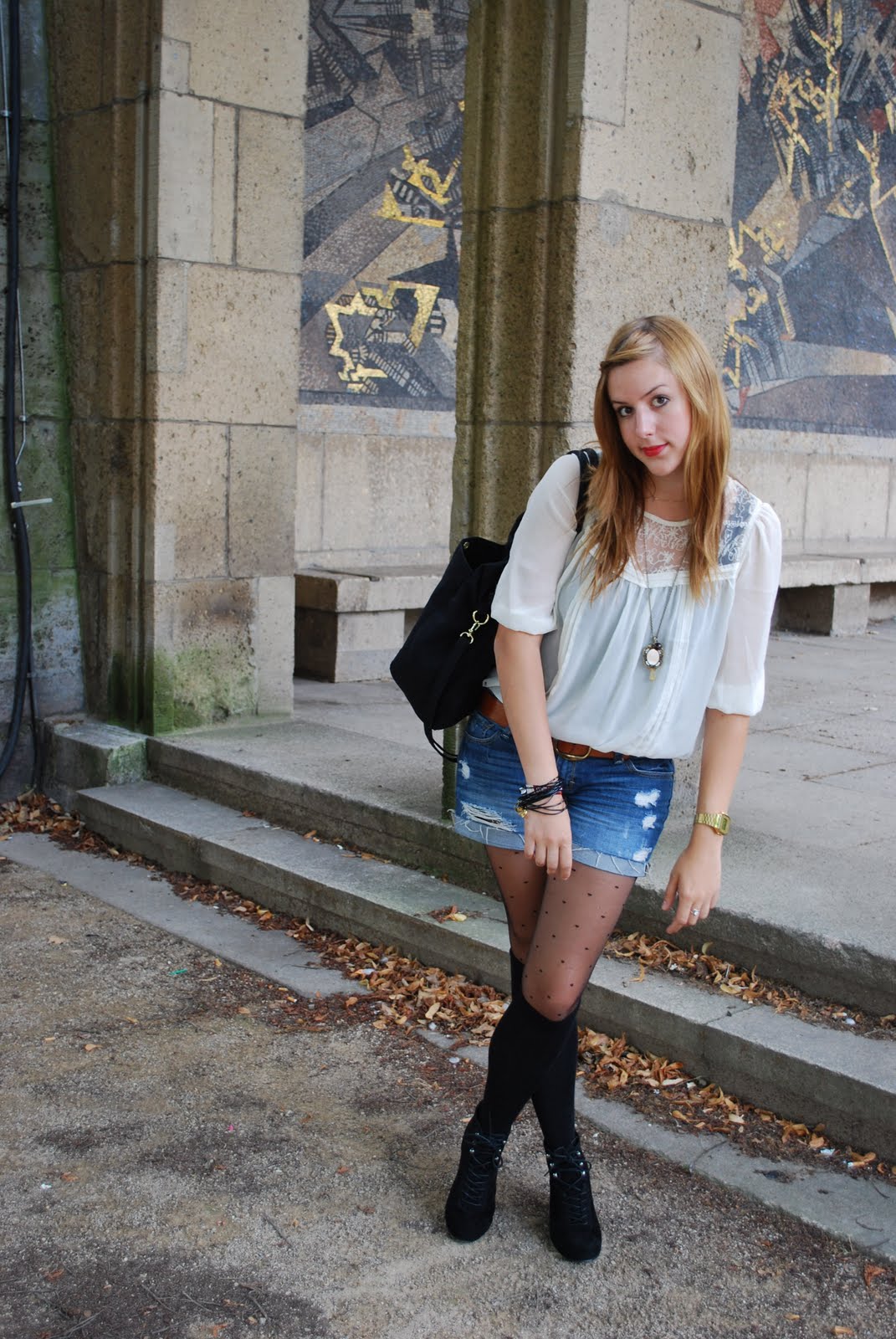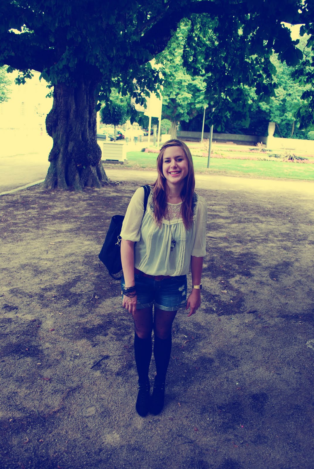 was ich anhatte: strumpfhose:primark / overknees: asos / armband: asos / schuhe: no name / bluse + tasche: h&m, uhr: asos / kette: koton