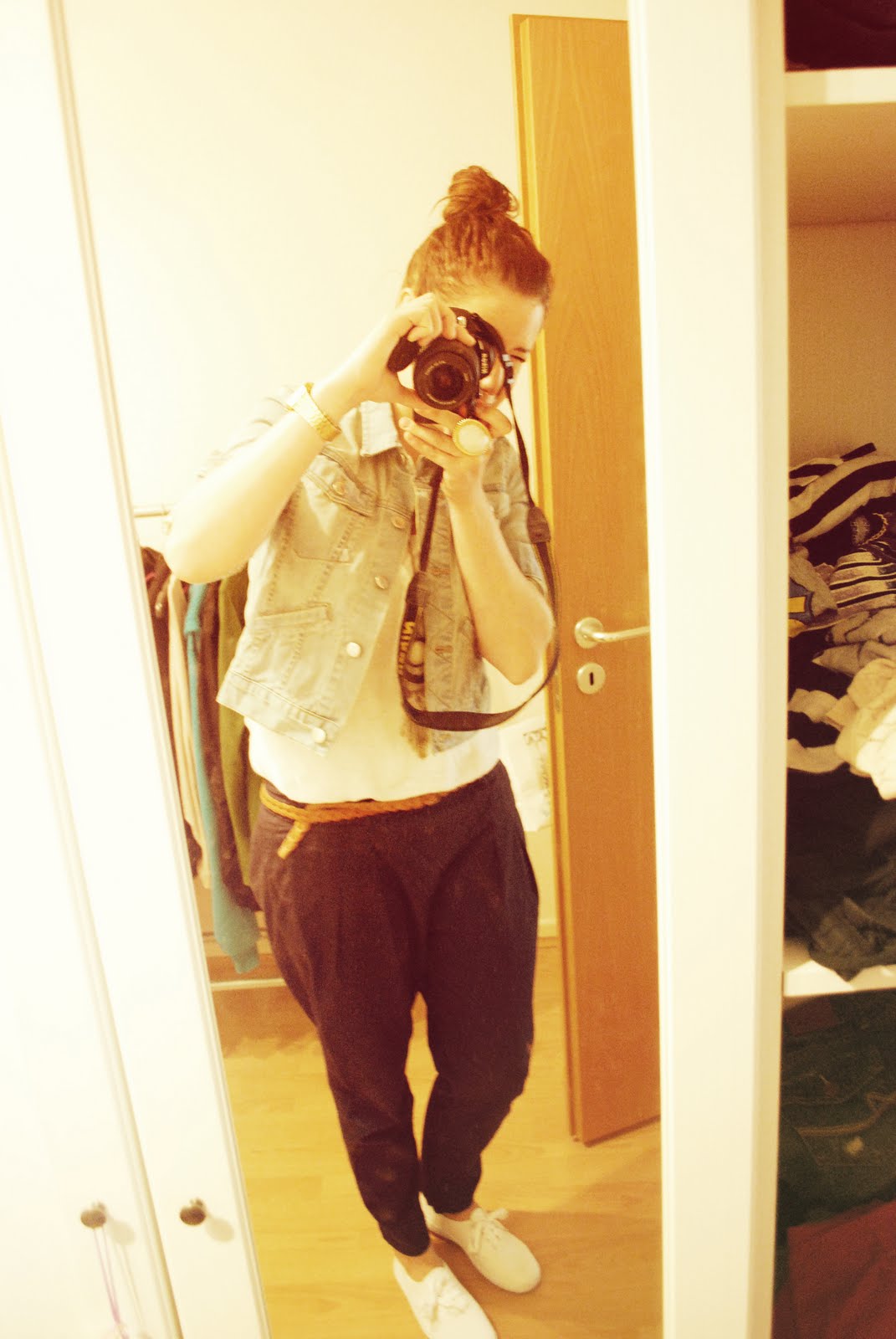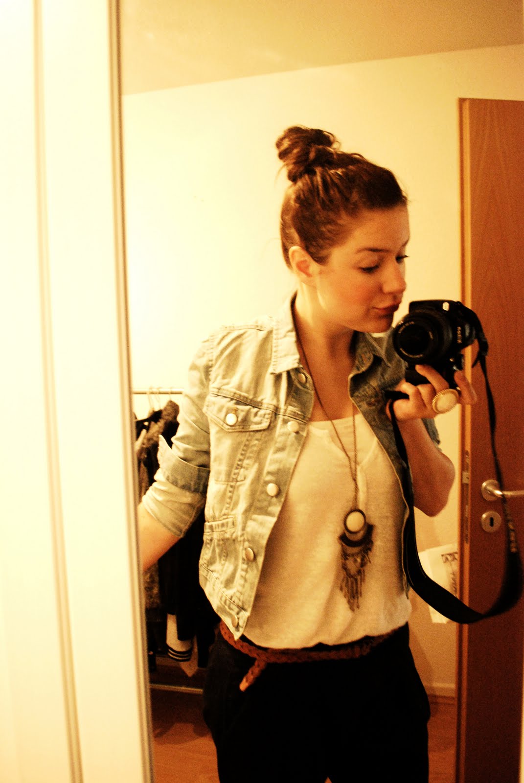 Jacke: Monki, Chino: Zara, Top: Esprit, Kette: H&M, Schuhe und Ring: Primark, Gürtel: 24colours.de