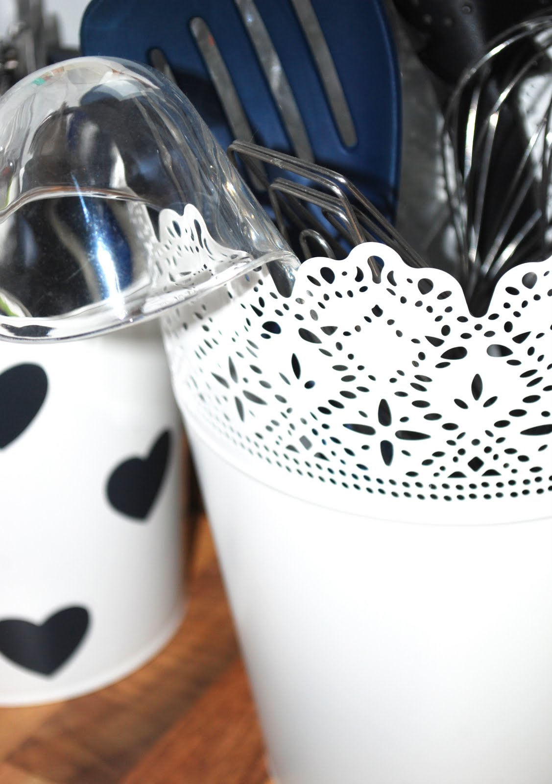 Die Blumenvasen von IKEA fand ich so schön, dass ich sie als Küchentöpfe umfunktioniert habe. Jetzt stehen sie mitten in der Küche und beinhalten meine ganzen Löffel, Kellen usw.