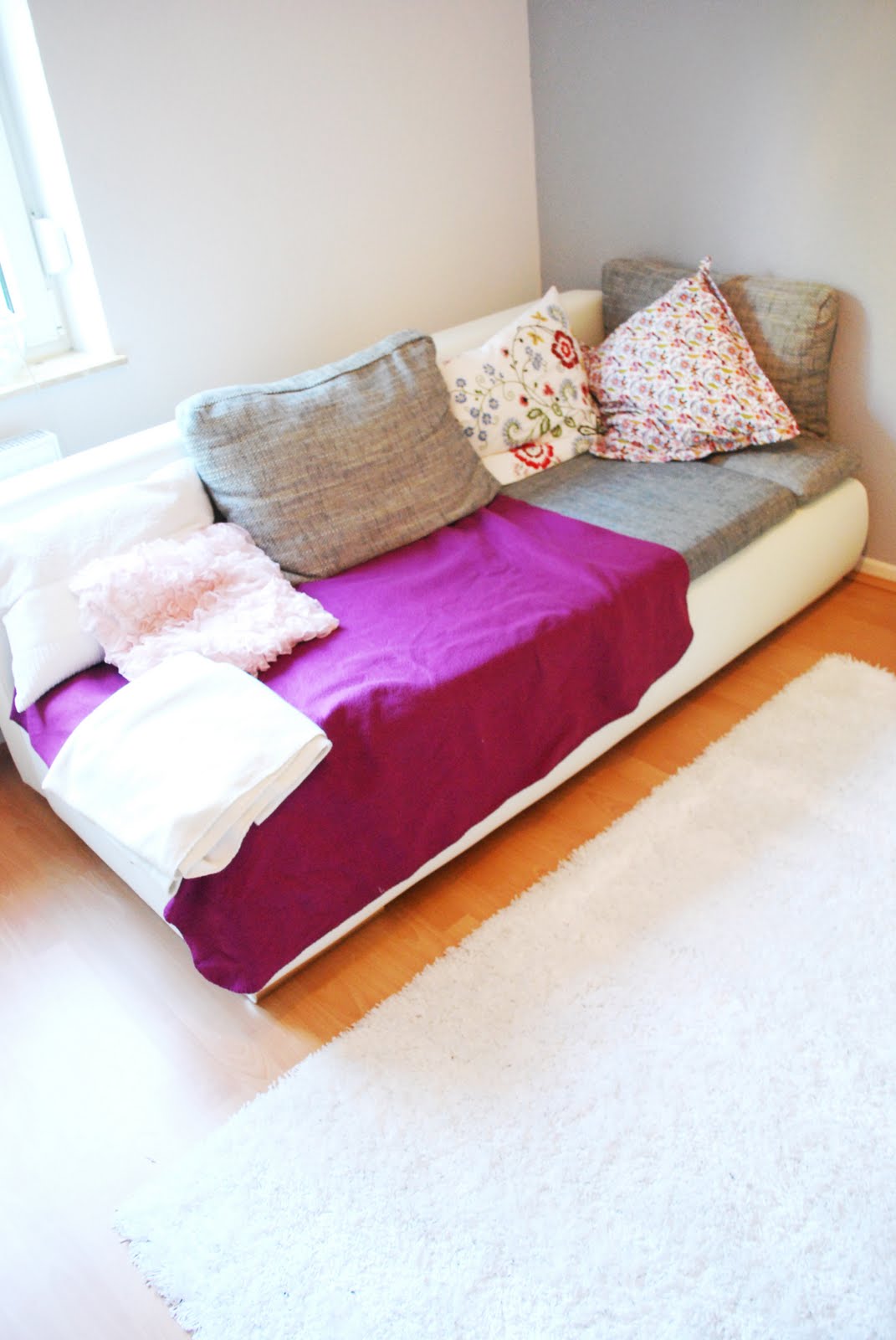 Mein Sofa hat endlich etwas Farbe abbekommen mit Kissen von H&M und IKEA und ner Tagesdecke  von Family.