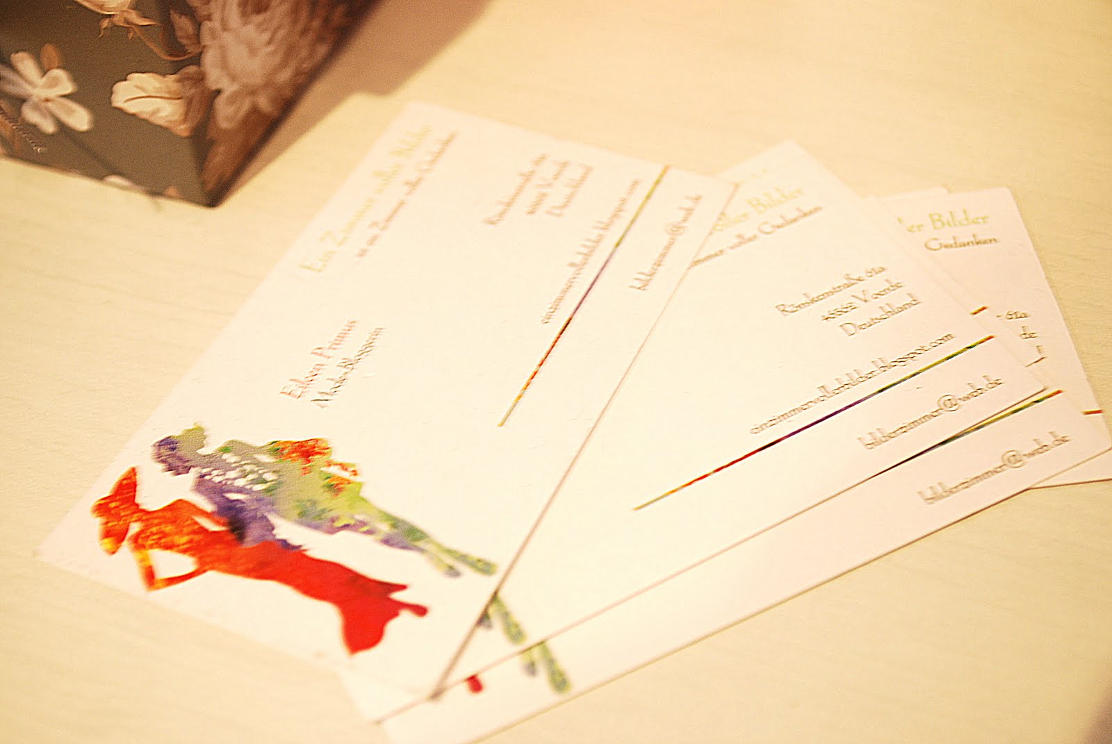 Und Ilka und ich haben schon was länger eigene Visitenkarten für den Blog, die wir gerne mal auf Partys auf dem Klo verteilen oder beim Friseur liegen lassen