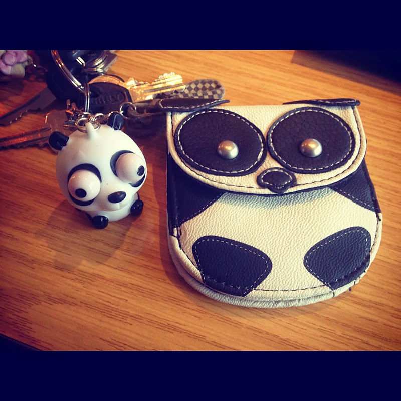 Links: mein neuer Schlüsselpanda Keviiin 🙂 Rechts: mein neues Panda/Eulen Portemornaie. Ja, ich steh mega auf Pandas.: