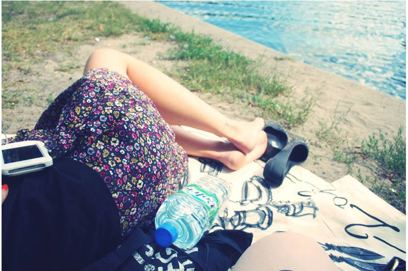 Eigentlich wollten wir Frühstücken gehen. Der Wecker sollte um 10 Uhr klingeln, doch den Arsch bekamen wir mal wieder nicht hoch. Party bis 5 Uhr morgens am Vortag, da haste das Schlamassel. Um zehn kurz aufgewacht, die Augen kaum aufbekommen. Wir sahen uns kurz an, nickten uns zu und drückten auf die „halt die Schnauze, Wecker“-Taste. Um halb eins mittags gab es dann das Festmahl: Zwei Löffel, ein Nutellaglas und Toast. Das Edel-Festmahl gibt es dann, wenn Ilka das nächste Mal in Berlin ist. Gestern war ja ihr letzter Tag, deswegen haben wir nicht sooo viel gemacht. Picknick-Decke geschnappt, fünf Meter gelaufen und an den See gechillt. Ich wohne was das angeht einfach perfekt. Die Sonne schien, die Kinder haben uns genervt, das Eis war viel zu schnell gegessen – das übliche halt. In bester Blogger-Manier haben wir den Tag am See mit der Nikon festgehalten und ein bisschen die Aussicht und uns geknipst. Das gute Wetter wollen wir schließlich teilen mit euch! Am Wochenende wird es heiß heiß heiß hab ich gehört. Find ich jut, hab nämlich frei und seh Ilka zu Hause in NRW wieder.